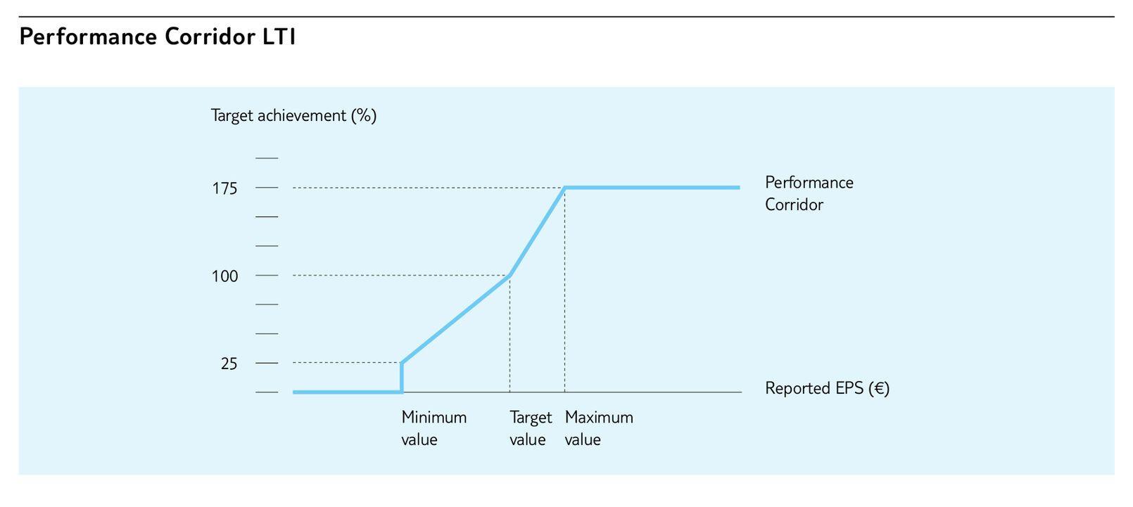 The Supervisory Board sets minimum, target and maximum values for the Reported EPS, which correspond to target achievement of 25%, 100% and 175% respectively.